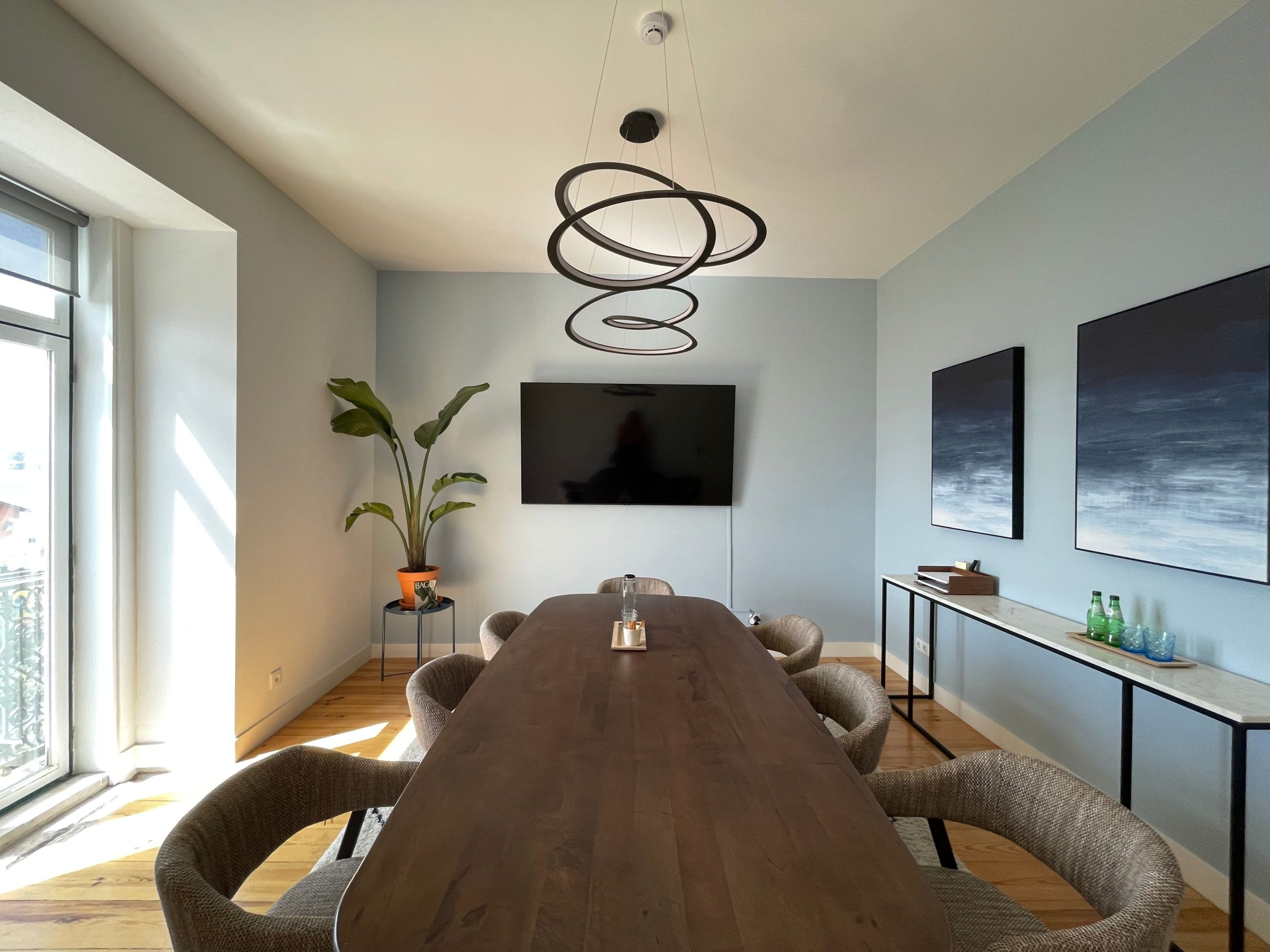 Each area is meticulously crafted to support both the individual and the team. The conference room, defined by its commanding wooden table and complemented by plush seating, is equipped for both high-stakes meetings and casual brainstorming sessions. Innovative lighting solutions, such as sculptural overhead fixtures, ensure optimal illumination, while artworks add a narrative depth, transforming everyday interactions into inspired experiences. The seamless integration of technology with design ensures that functionality serves both form and the user’s well-being.